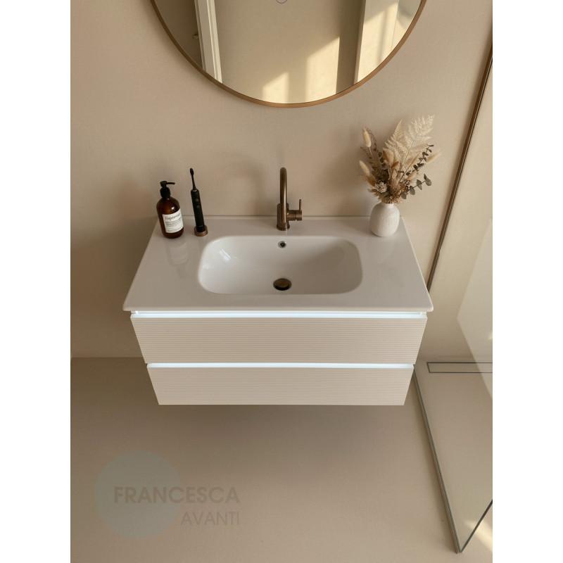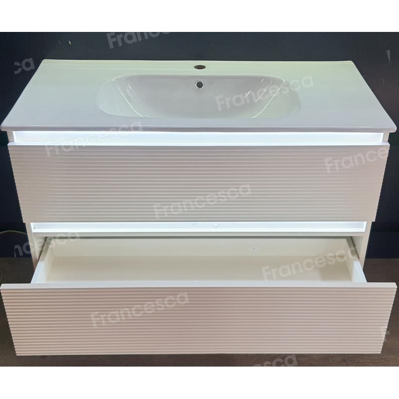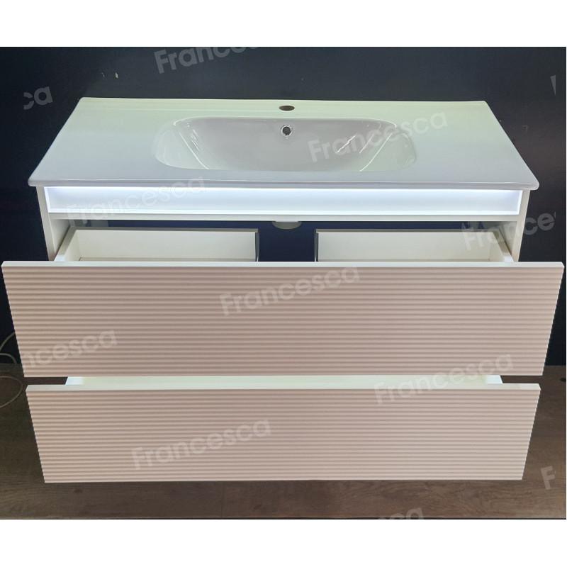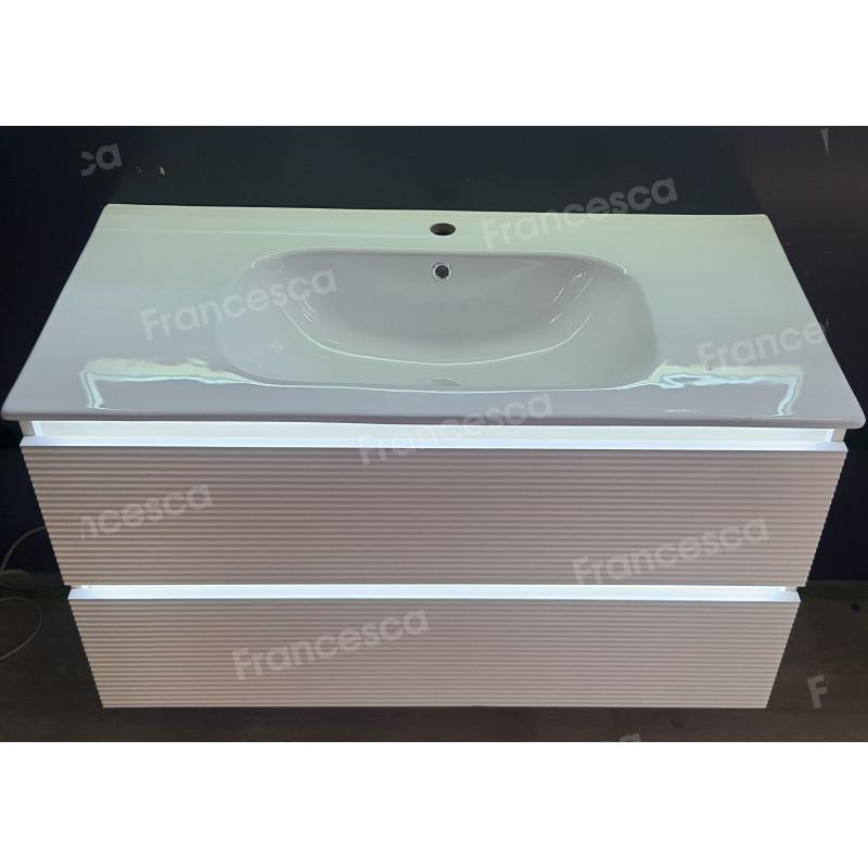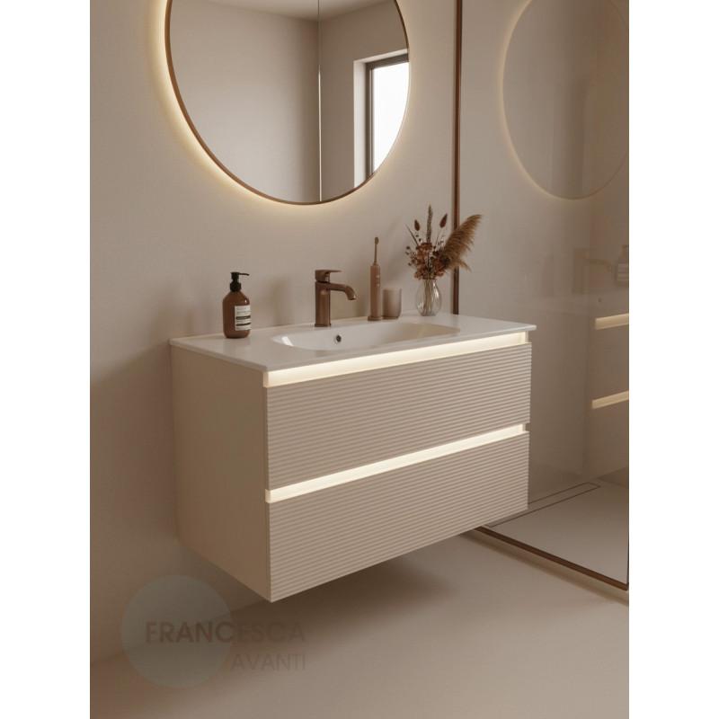 Тумба с раковиной Francesca Avanti Panda 100, DR-07-100, с подсветкой, подвесная, бежевая, с фрезеровкой