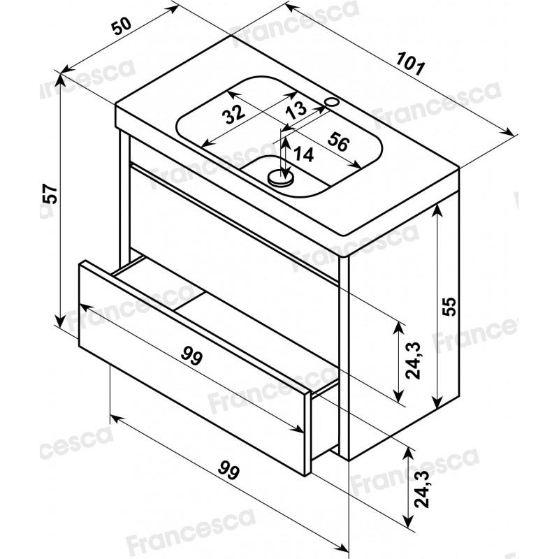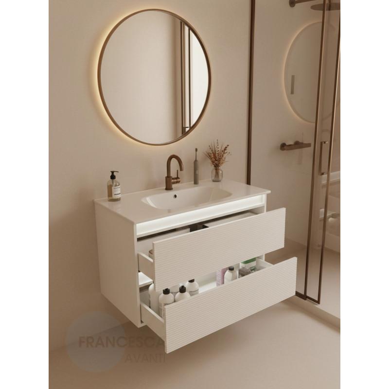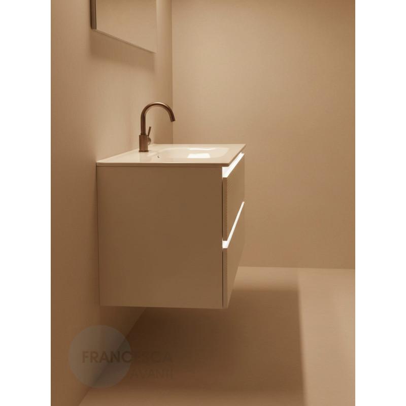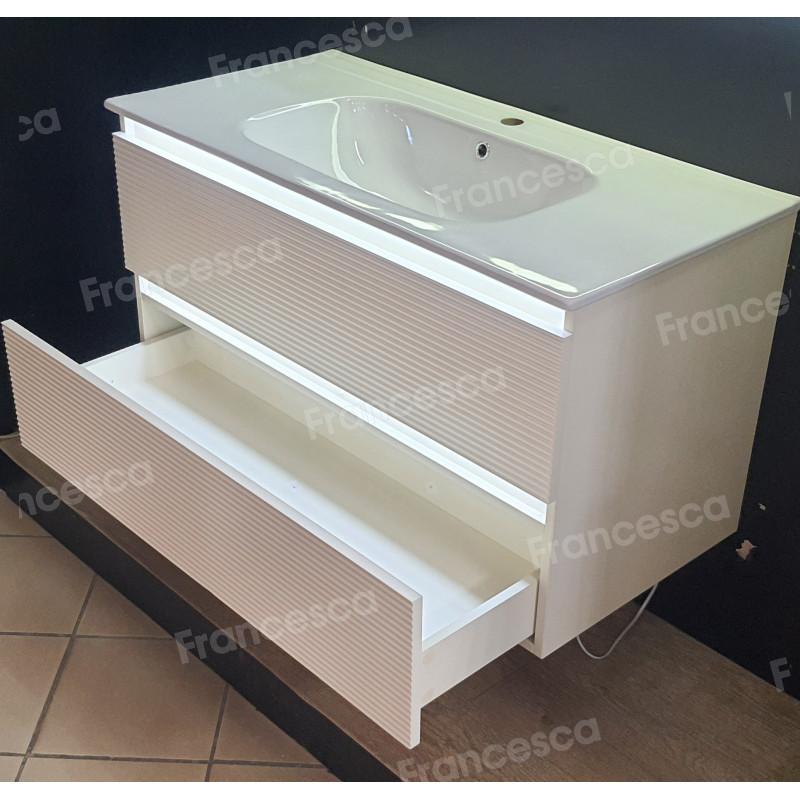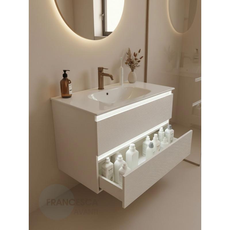 Тумба с раковиной Francesca Avanti Panda 100, DR-07-100, с подсветкой, подвесная, бежевая, с фрезеровкой