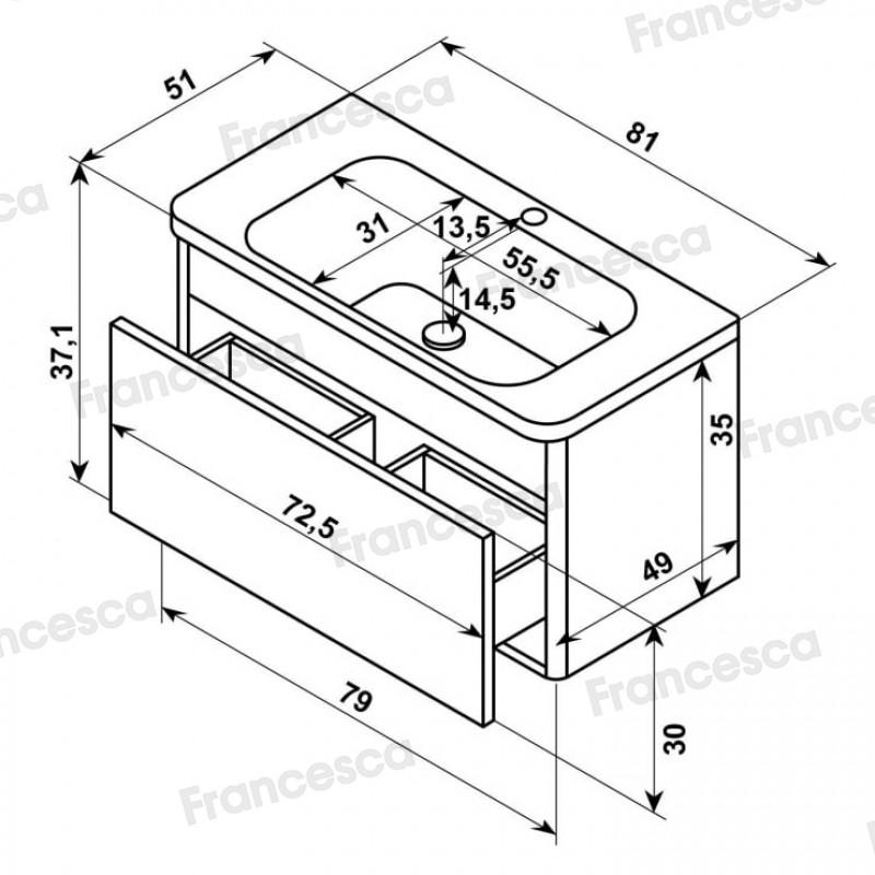 Тумба с раковиной Francesca Avanti Panda 80, DR-01-80, подвесная, с подсветкой, серая